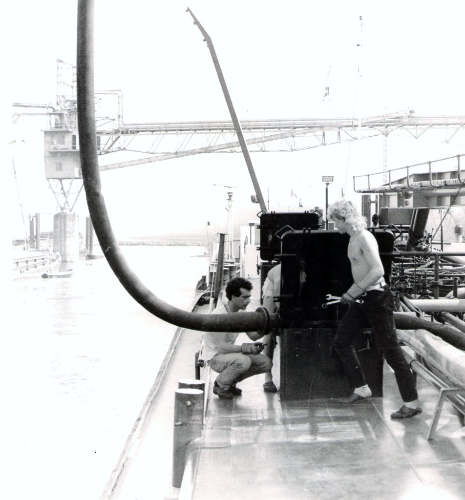 Na een half uur keren ze terug aan boord. Nu is het wachten op het sein “pompen”, via de walkie‑talkie die Jos van de fabriek heeft meegekregen.