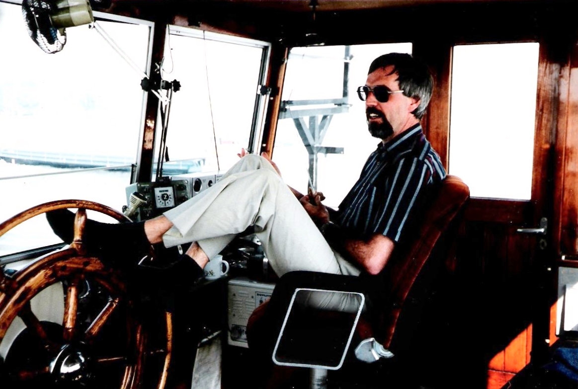 Merkwaardig: bij Alvracht hebben ze ook steeds maar nieuwe kapiteins… Jan mocht ook een stukje varen — en dat zelfs met de automatische piloot.
