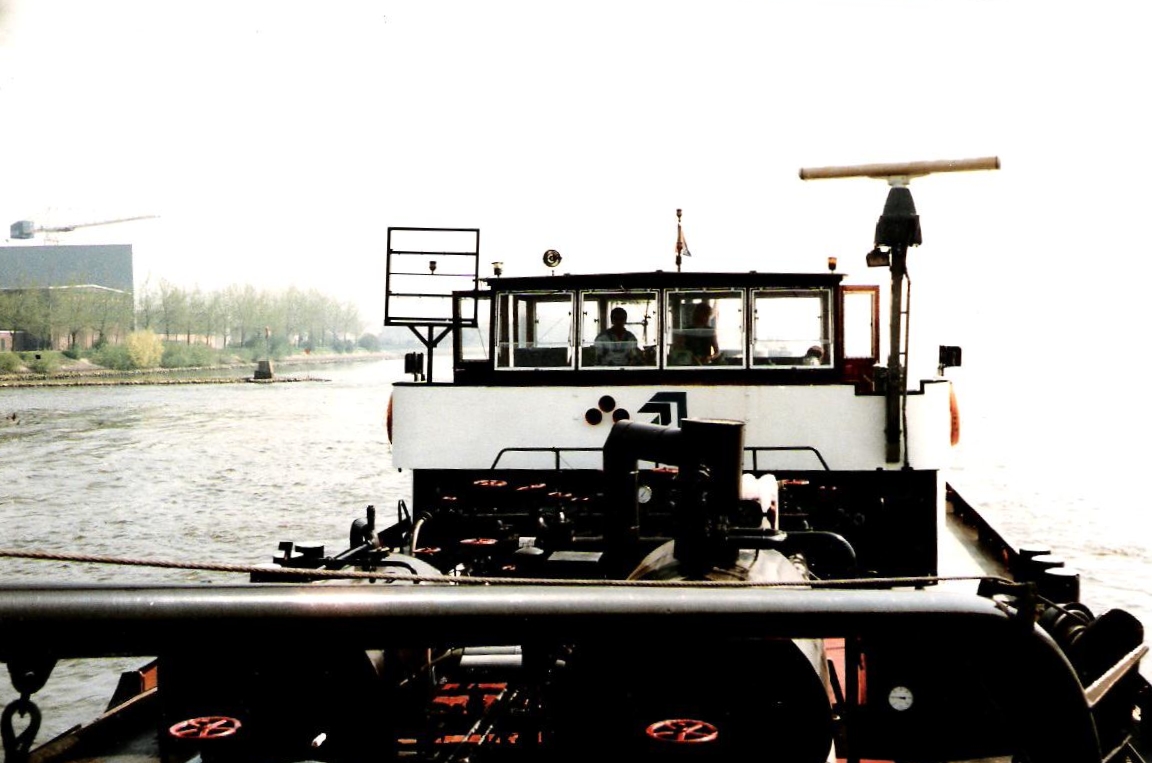 Voor ons uit vaart al geruime tijd de duw-eenheid Stinnes-Schub I, nu Herkules XIII ENI 05501500.