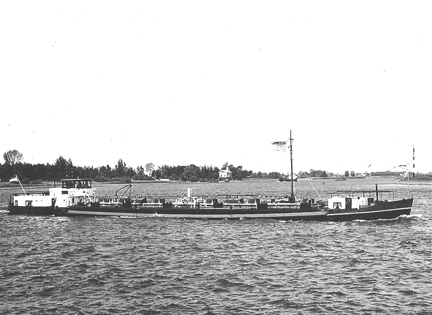 Beide schepen voeren dus een blauwe vlag aan de stuurboordkant van de stuurhut. Dat was in die tijd het vaste sein dat je elkaar stuurboord‑op‑stuurboord zou passeren. ’s Nachts werd dit vervangen door een geel knipperlicht. Het was een duidelijk systeem dat iedere schipper kende, en zo wist je precies hoe je elkaar veilig kon kruisen.