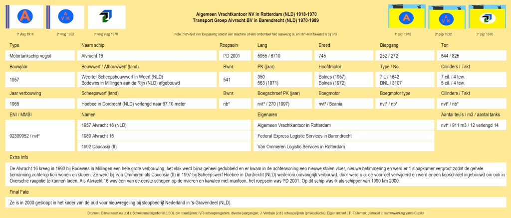 De Alvracht 16 ligt in Vlaardingen bij de Nieuwe Matex om Beef Tallow te laden. Deze lading is bestemd voor de Sunlightfabriek van Unilever in Mannheim‑Rheinau.